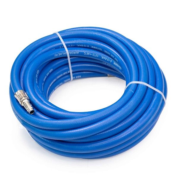 Пневматические шланги AURORA предназначены для подключения разнообразного инструмента к источникам сжатого воздуха: пневмомагистралям, компрессорам и т.д. Широкий выбор диаметров и длин шлангов AURORA позволит подобрать именно тот вариант оснастки, который необходим для каждой конкретной ситуации от подкачки шин до работы гайковёртов, краскопультов, полировальных машин и пр. Рукава изготовлены из синтетического каучука (NBR), армированного капроновой нитью и предназначены для работы со сжатым воздухом с давлением до 15Бар. Температура эксплуатации от -15 до +40С.  Шланги оснащены фитингами рапид.