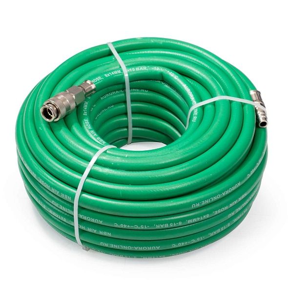 Пневматические шланги AURORA предназначены для подключения разнообразного инструмента к источникам сжатого воздуха: пневмомагистралям, компрессорам и т.д. Широкий выбор диаметров и длин шлангов AURORA позволит подобрать именно тот вариант оснастки, который необходим для каждой конкретной ситуации от подкачки шин до работы гайковёртов, краскопультов, полировальных машин и пр. Рукава изготовлены из синтетического каучука (NBR), армированного капроновой нитью и предназначены для работы со сжатым воздухом с давлением до 15Бар. Температура эксплуатации от -15 до +40С.  Шланги оснащены фитингами рапид.