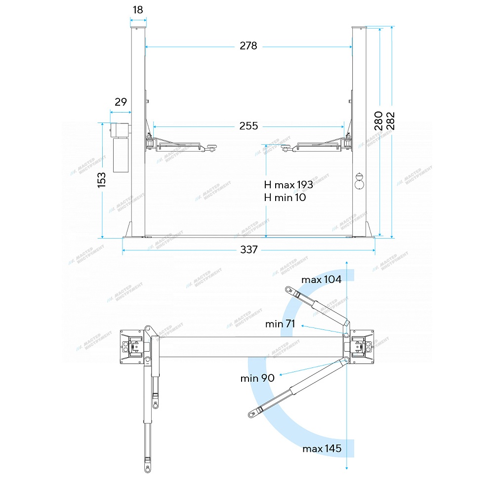 Подъемник двухстоечный 4 т с нижней синхронизацией, H=2,8 м, 220 В, синий . STX40TT_220 купить в Красноярске цена ✅ - Все для СТО