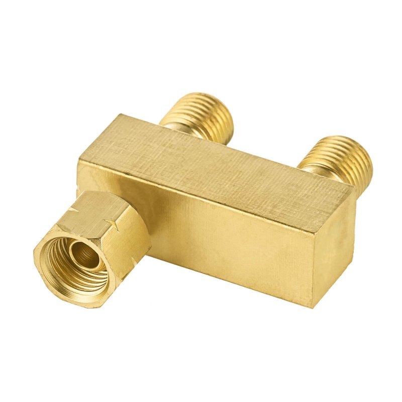 Изготовлен из латуни. На газовый коллектор разветвитель крепится при помощи накидной гайки М12х1,25LH. С обратной стороны предусмотрено два штуцера с резьбой М12х1,25LH для присоединения к ним газовых вентилей.