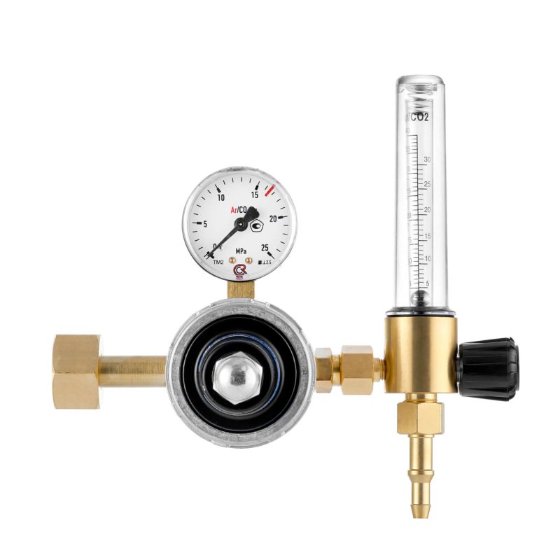 Корпус регулятора изготовлен из латуни. Колба ротаметра изготовлена из прочного пластика, которая имеет две шкалы Ar/CO2. Регулятор ПТК может использоваться в цеховом производстве интенсивной эксплуатации и на открытом воздухе. Подходит для ремонтных служб в условиях передвижных постов.