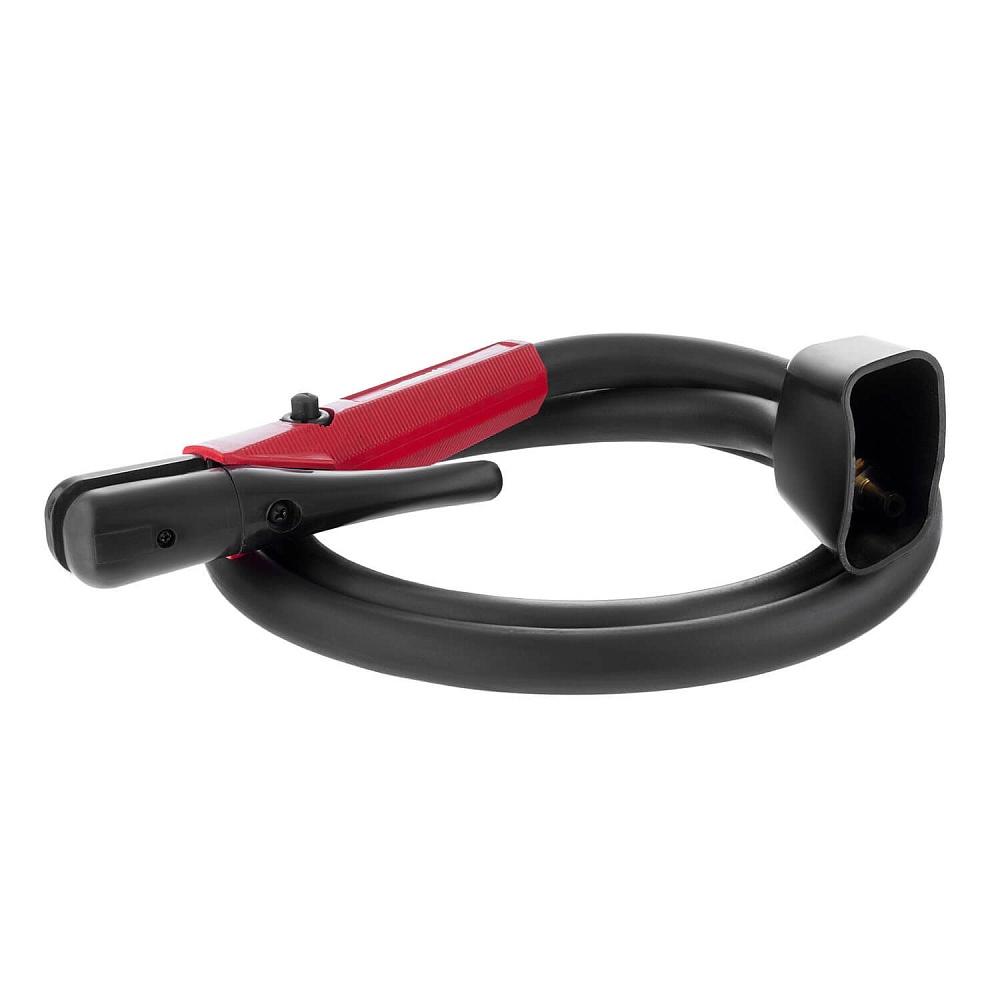 Внутри электрододержателя проложена трубка, через которую подается воздух. Воздух выходит через специальные отверстия. Воздушный поток из отверстий сходится на расстоянии 100–150 мм. На корпусе электрододержателя предусмотрена кнопка, которая включает и выключает подачу воздуха. Обратите внимание, что в ходе работ, воздух всегда должен выходить за электродом. Угол наклона электрода должен быть в пределах 30-60° к поверхности детали.