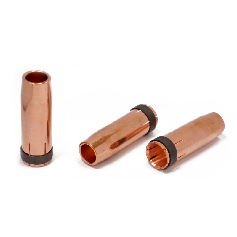 Сопло MIG-MAG - это расходная часть горелки, которая отвечает за формирование струи защитного газа в процессе полуавтоматической сварки. В процессе работы сварочные брызги налипают на сопло, а продолжительные работы на максимальных токах выжигают сопло изнутри. Поэтому деталь приходится периодически менять. Для того, чтобы продлить жизнь расходнику – сопло необходимо время от времени зачищать.