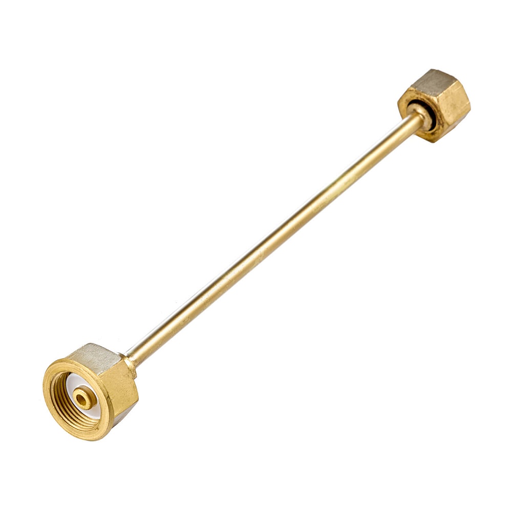 Устройство для перекачки газов из баллона объемом 40 литров в баллоны малого объема (до 10 литров). Устройство состоит из латунной трубки длиной 250 мм с накидными гайками G3/4–W21,8 и полиуретановыми прокладками.