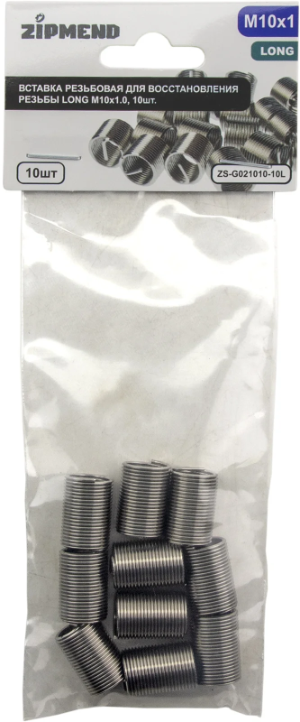 Вставка резьбовая для восстановления резьбы LONG M10 х 1.0, 10шт., ZIPMEND