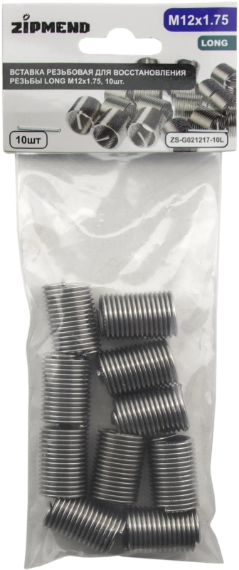 Вставка резьбовая для восстановления резьбы LONG M12 х 1.75, 10шт., ZIPMEND