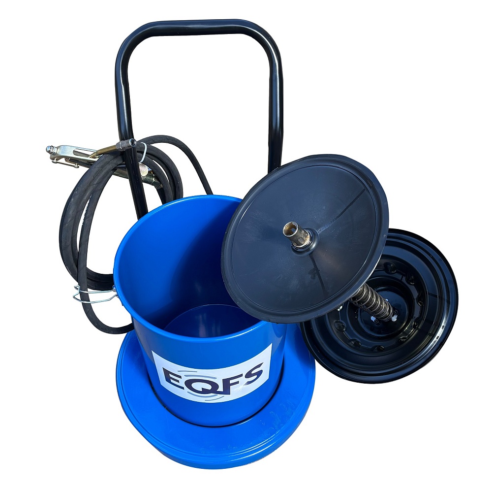 Пневмопривод. На колесах. Можно использовать на ведро. Имеет легкий вес и экономичную конструкцию для удобства перемещения и эксплуатации. Передовые технологии изготовления из материалов высшего класса, отличная производительность перекачки гарантирует долговечность и безопасность продукции в условиях работы под высоким давлением. Емкость бака 20 кг. Давление смазки 350-400 Атм. Пистолет с наконечником производительность 850 г/мин. оборудован "Z" образным шарниром для удобной и беспрепятственной работы в трудно доступных местах (вращение на 360град.) Габариты: 840X450X450 мм, вес 16,9 кг, длина шланга 5 м.