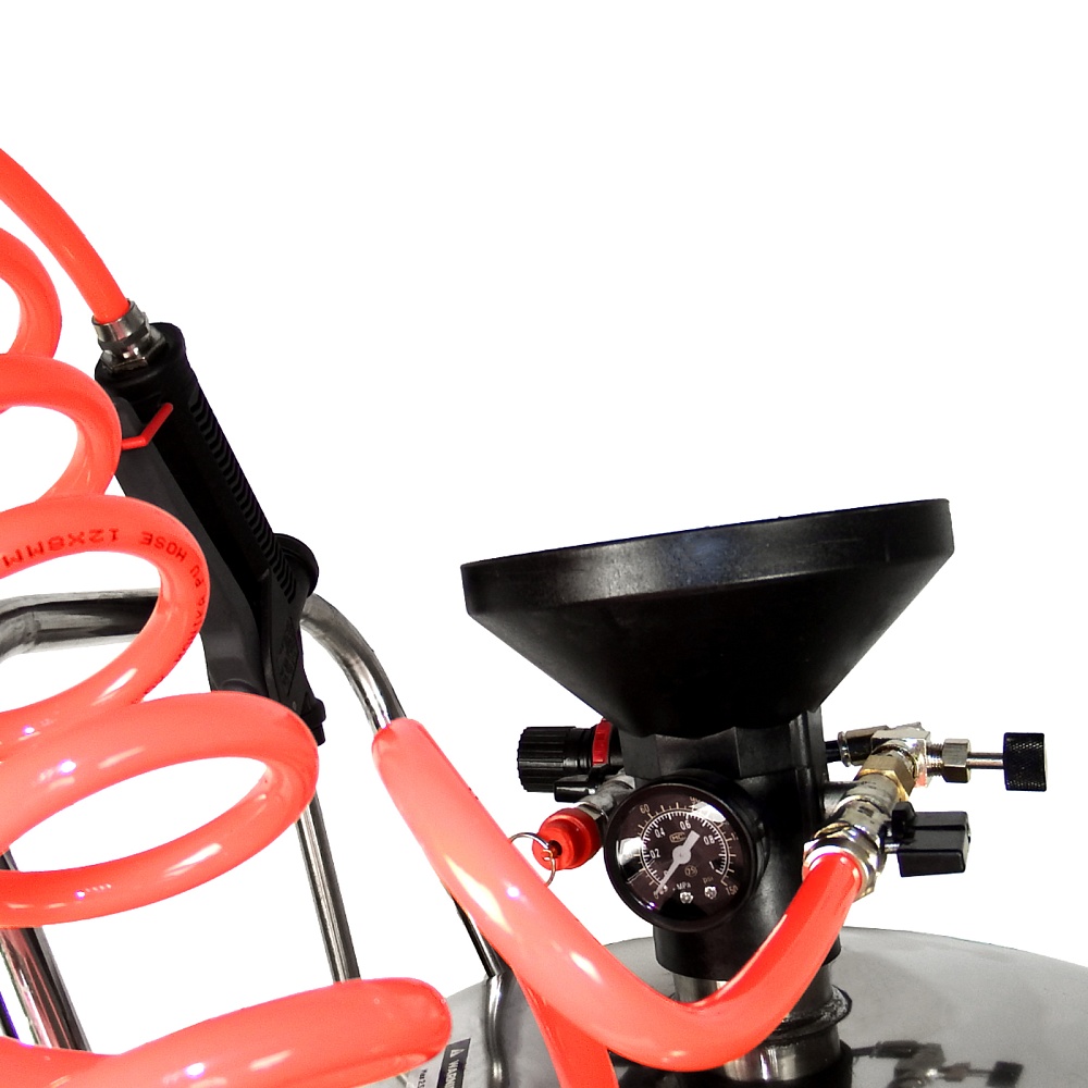 Данную модель можно неограниченно применять в приготовлении пены из концентрированного шампуня. Корпус изготовлен из прочной нержавеющей стали, стойко переносящей жесткие условия эксплуатации. Для удобства перемещения установлены большие обрезиненные колеса, воронка закрывается крышечкой, за счет чего в движении вода не вытекает.