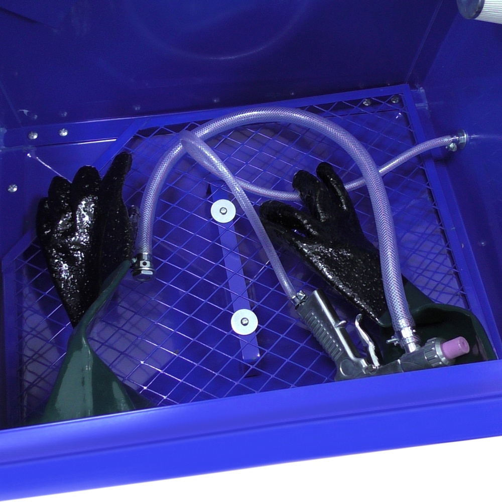 Камера пескоструйная T06301 AE&T инжекторного типа с резервуаром общим объемом 90л настольная. Для использования со стеклянными бусинами, песком кремнезема, алюмооксидом и другими абразивами.