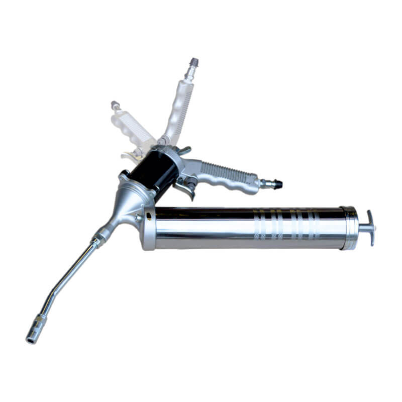 Пневматический шприц с поворотной головкой. Дополнительно оснащен механизмом поворота рукоятки для работы в ограниченном пространстве.