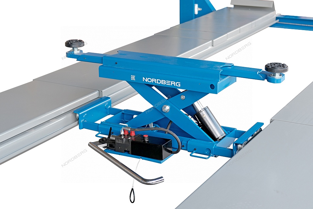 Оснащение подъемника дает возможность производить регулировку развал/схождения, ремонт тормозной и рулевой систем, и другие работы