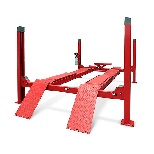 Launch TLT-440W (с пневмотраверсой) (Красный), питание 220 В. - гидравлический 4-х стоечный подъемник для регулировки развала-схождения. Грузоподъемность 4 тонны, имеет предустановленную траверсу 2,0 т с пневматическим управлением. Управление стопорами — пневматическое. Подходит для всех датчиковых стендов и стендов 3D.