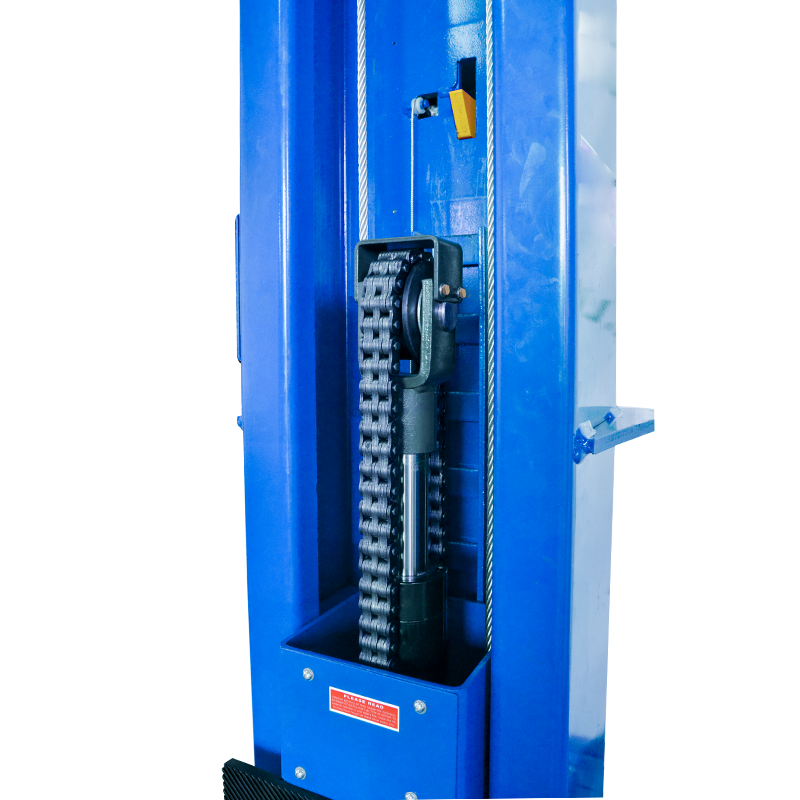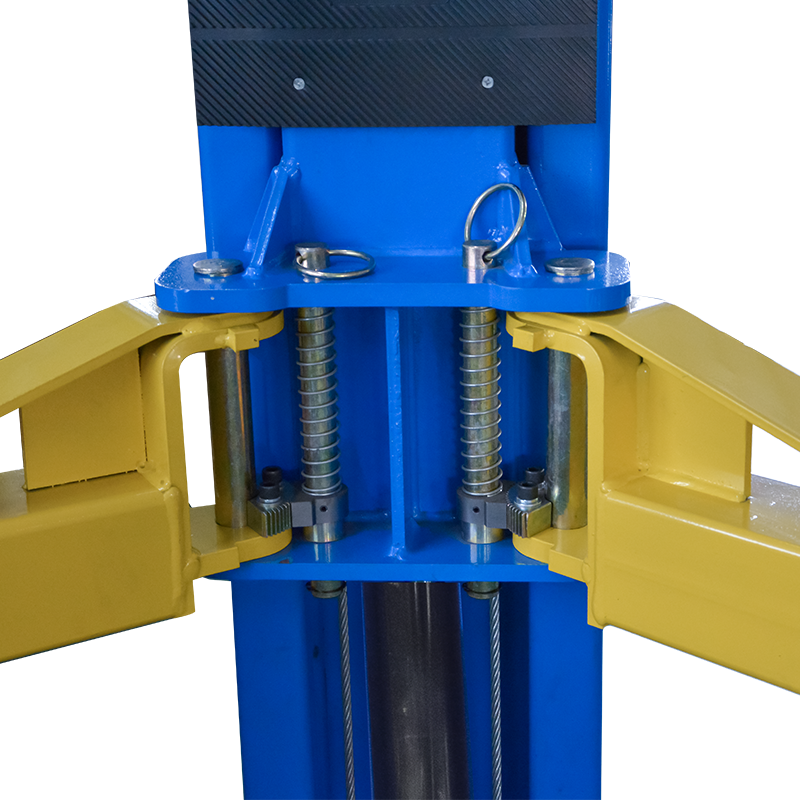Электрогидравлический 2-х стоечный автомобильный подъёмник с верхней синхронизацией и разблокировкой рычагом на одной колонне, грузоподъемностью 4,5 тонны.