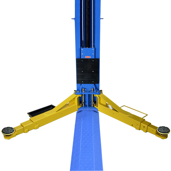 Двухстоечный электрогидравлический подъемник асимметричной конструкции с нижней синхронизацией. Снятие с замков безопасности ручное отдельно на каждой стойке.