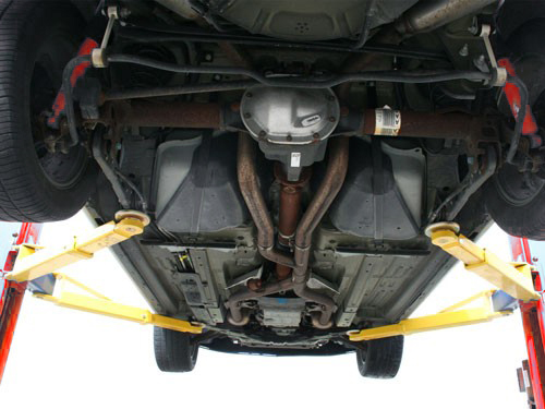 Электрогидравлический двухстоечный подъемник с асимметричной конструкцией, работающий по принципу верхней синхронизации.