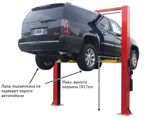Двухстоечный электрогидравлический подъемник с верхней синхр. Грузоподъемность 4.0 т, высота колонны 3602мм, механическое управление стопорами на одной колонне.
