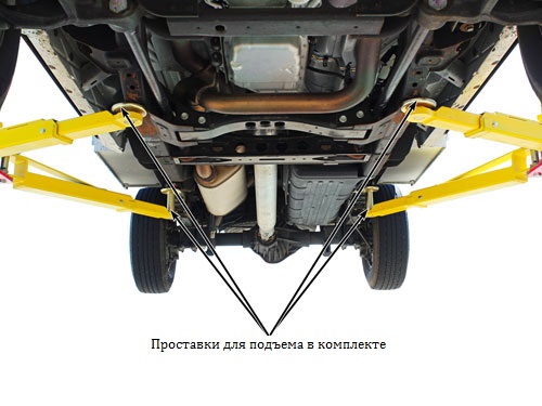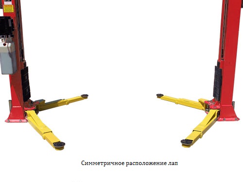 Подъемник двухстоечный электрогидравлический, асимметричный, двухцилиндровый, г/п 4000 кг., 2,2 кВт, высота подъема 1890 мм., расстояние между стойками 2750 мм., с нижней синхронизацией.