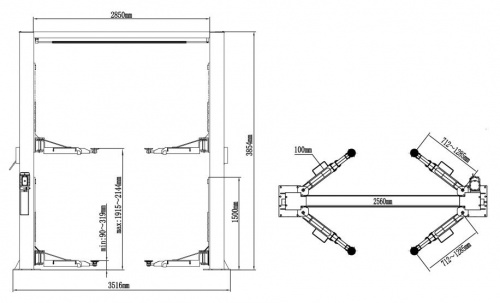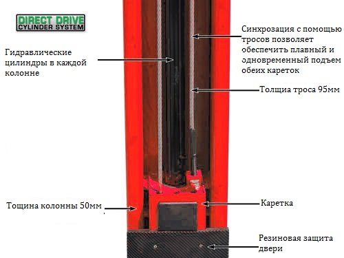 Электрогидравлический 2-х стоечный автомобильный подъёмник с нижней синхронизацией и разблокировкой на двух каретках.