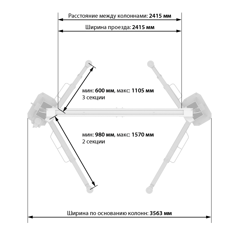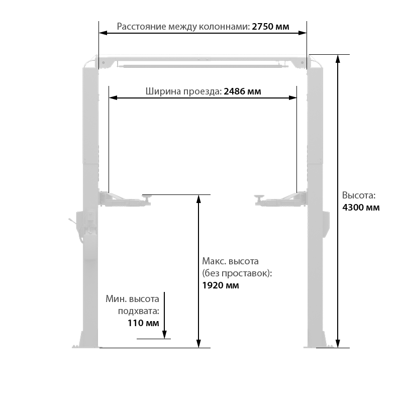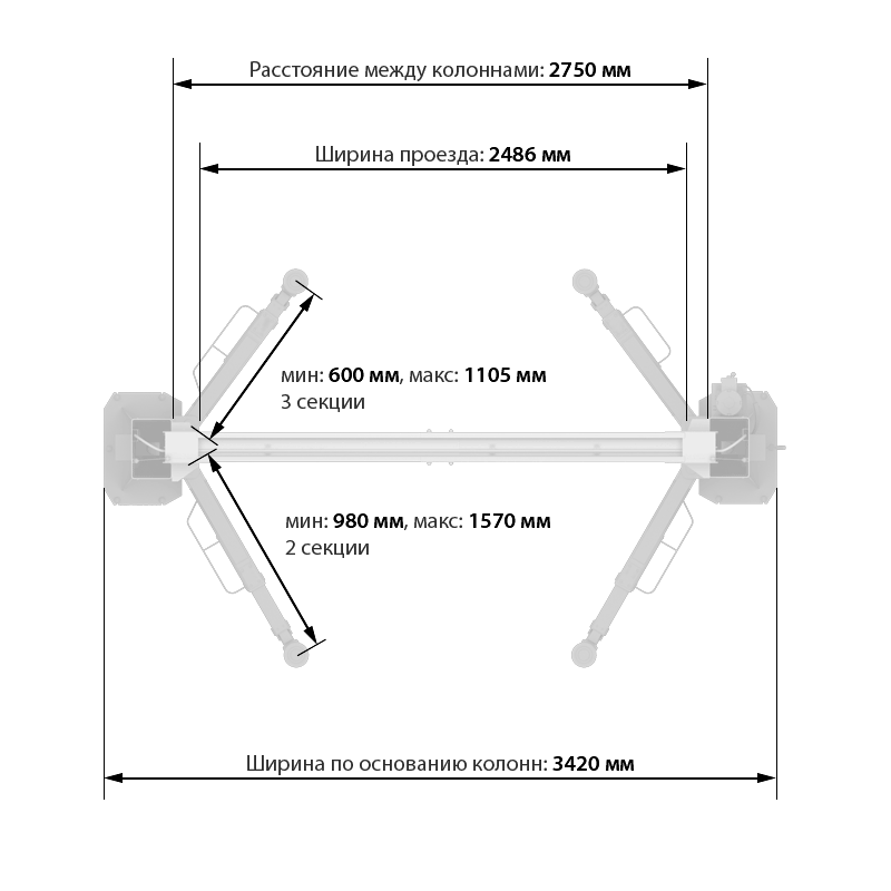 • Возможность симметричной или асимметричной установки стоек подъемника (в зависимости от задач пользователя);