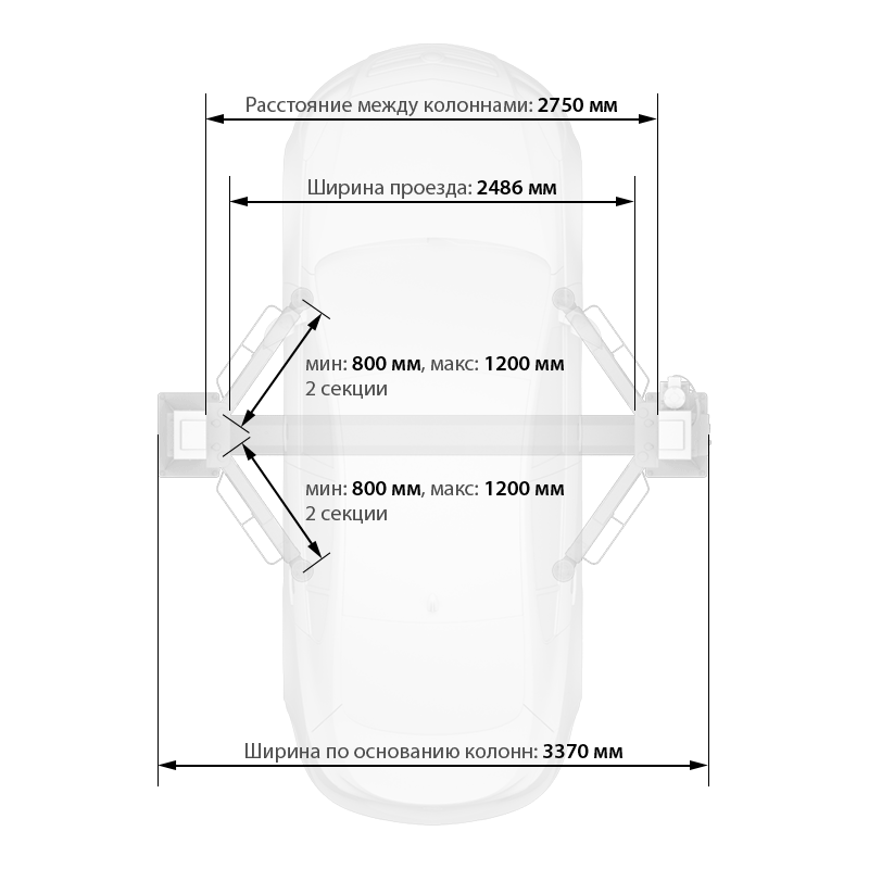 Винтовые опоры для плавной регулировки подхвата автомобиля (от 110 мм от пола) с возможностью доустановки опции — проставок-удлинителей для рамных автомобилей.