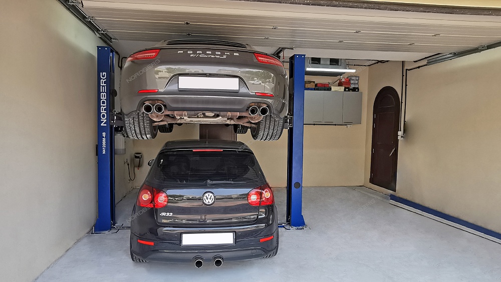 Двухстоечный подъемник с верхней синхронизацией и электростопорами NORDBERG N4120H1E-4B_3+2 – профессиональное оборудование для обслуживания легкового и грузового транспорта в автосервисных мастерских и СТО.