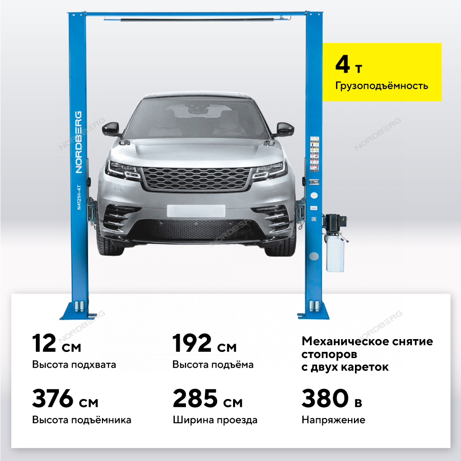 Подъемник 220V с верхней синхронизацией NORDBERG N4121H-4T купить в Красноярске цена ✅ - Все для СТО