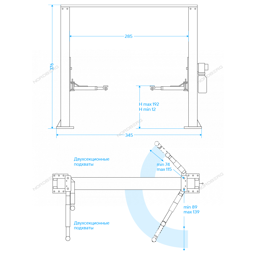 Подъемник 220V с верхней синхронизацией NORDBERG N4121H-4T
