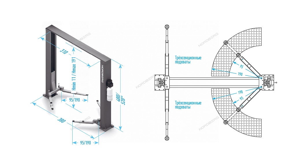 Подъемник 380V 2х стоечный 6т с верхней синхронизацией (синий) LONG NORDBERG N4122H1E-6B купить в Красноярске цена ✅ - Все для СТО