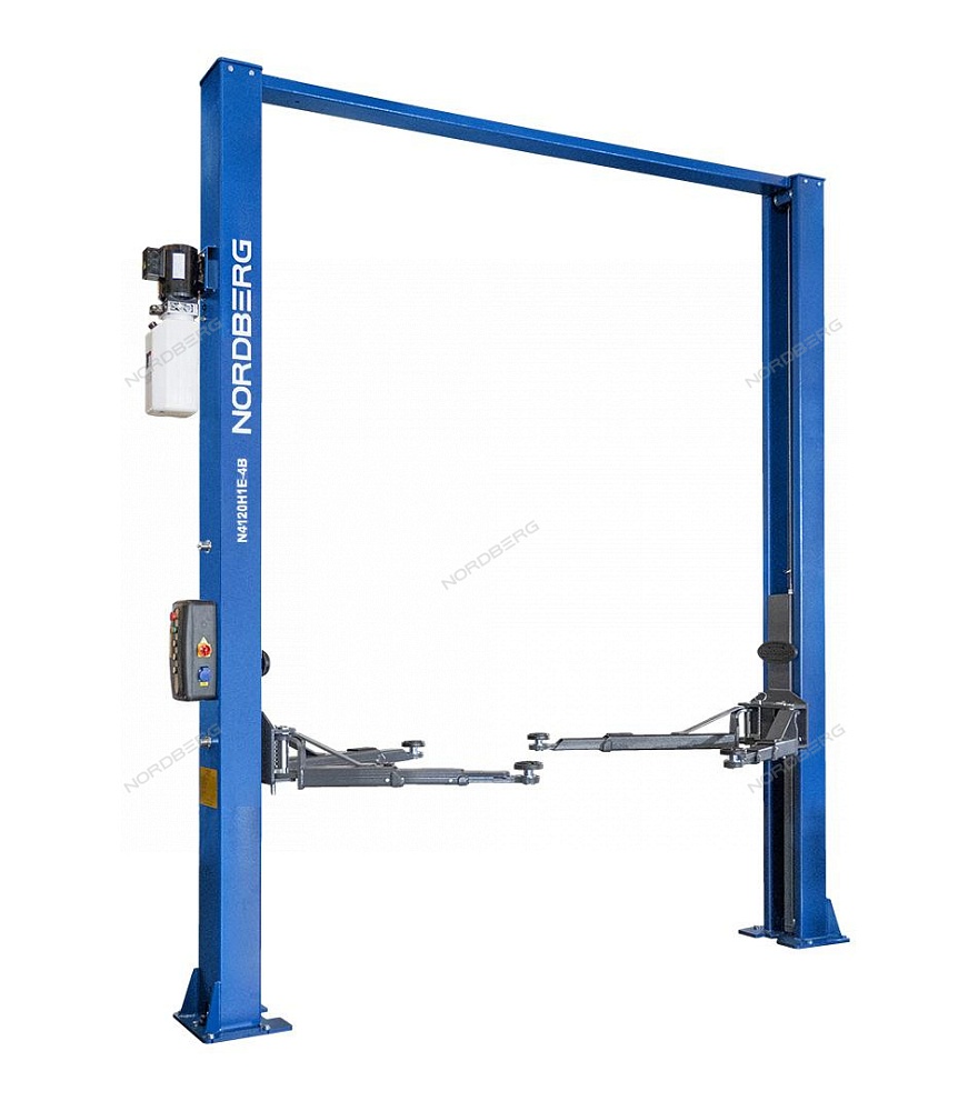Подъемник двухстоечный 4 т, верхняя синхронизация, с электростопорами, H=3,6 м, 380 В, синий NORDBERG N4120HE-4B_3+2_380