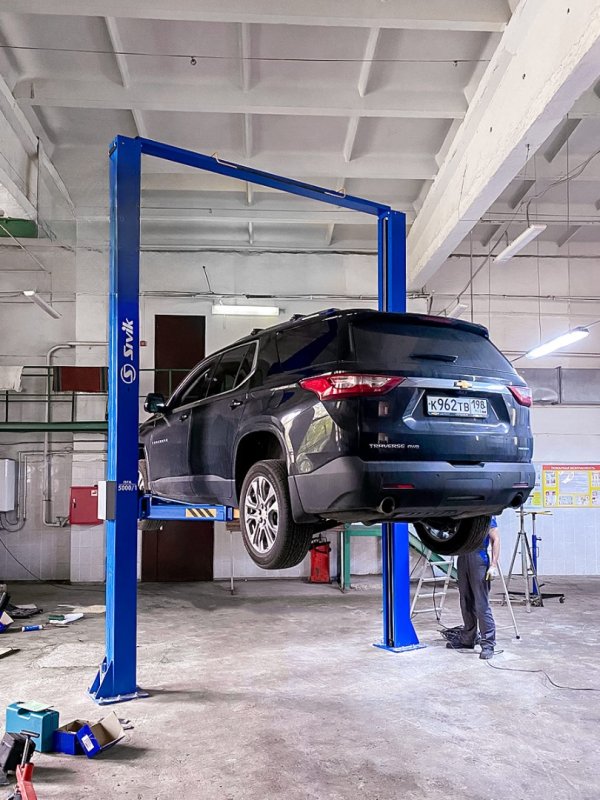 Симметричная конструкция подъемника надежно удерживает автомобили до 5 тн.