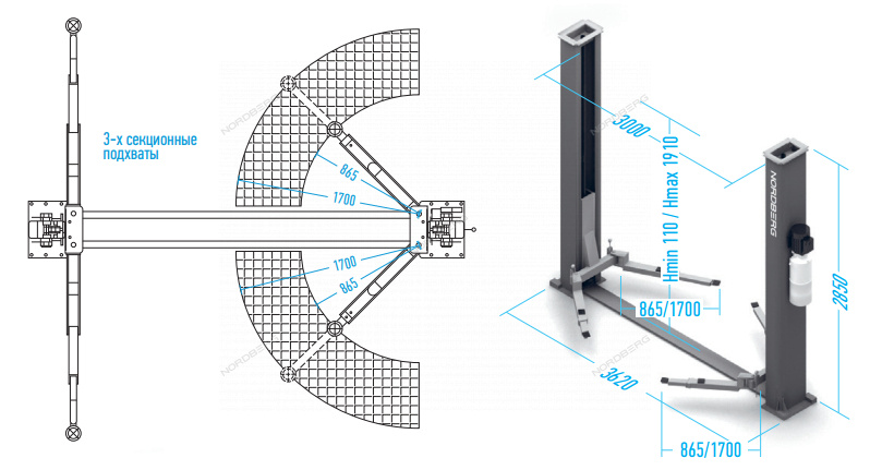NORDBERG ПОДЪЕМНИК N4122AE-5B 2х стоечный электрогидравлический, г/п 5т, 380V купить в Красноярске цена ✅ - Все для СТО