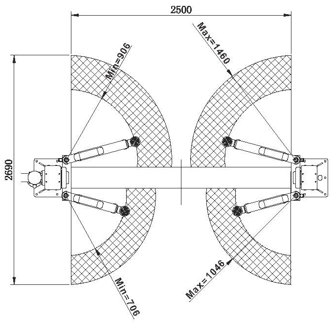 | Длина задних лап | 800-1220 мм | Ширина проезда | 2576 мм |