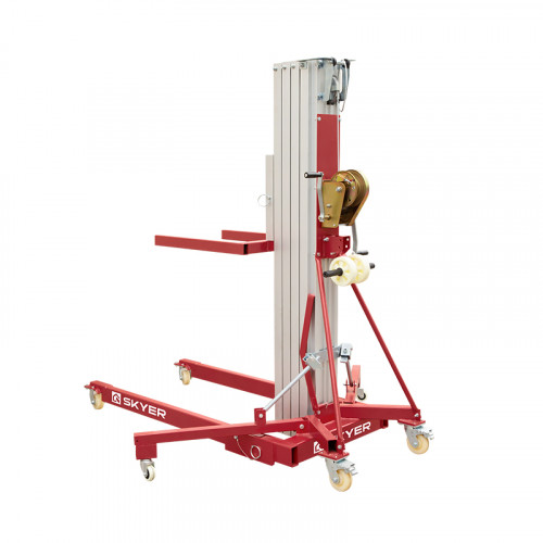 Телескопический подъемник SLA-15 представляет собой прочное, устойчивое и простое в использовании оборудование для подъема материалов. Складная мачта выполнена из легкого и долговечного алюминиевого сплава. Подъем груза осуществляется с помощью ручной лебедки. Для сборки и настройки материалоподъемника не требуются инструменты, с этим запросто справится один человек. Компактные размеры, малый вес и складные опоры упрощают хранение и транспортировку. Грузоподъемность модели достигает 350 кг.