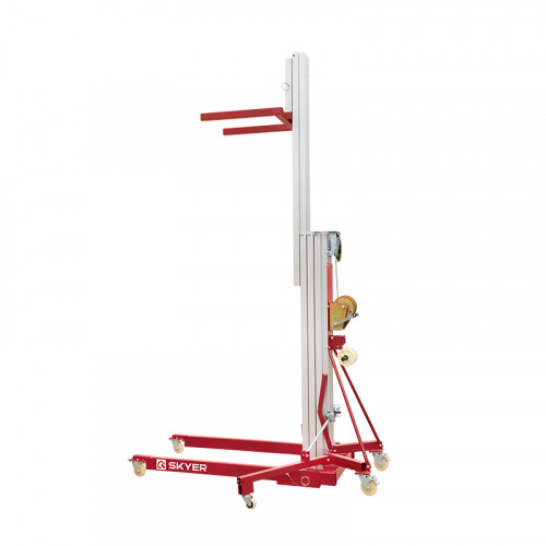 Телескопический подъемник SLA-20 представляет собой прочное, устойчивое и простое в использовании оборудование для подъема материалов. Складная мачта выполнена из легкого и долговечного алюминиевого сплава. Подъем груза осуществляется с помощью ручной лебедки. Для сборки и настройки материалоподъемника не требуются инструменты, с этим запросто справится один человек. Компактные размеры, малый вес и складные опоры упрощают хранение и транспортировку. Грузоподъемность модели достигает 300 кг.