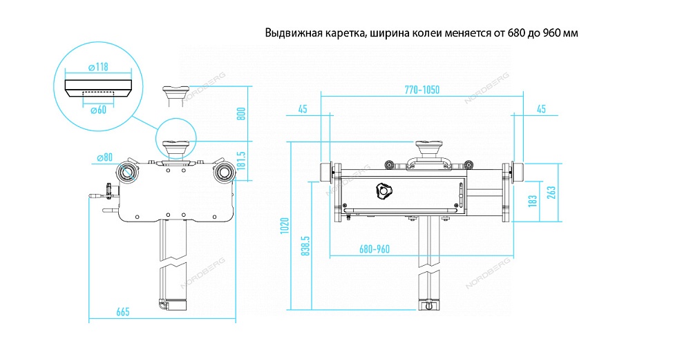 Ширина колеи меняется от 680 - 960 мм