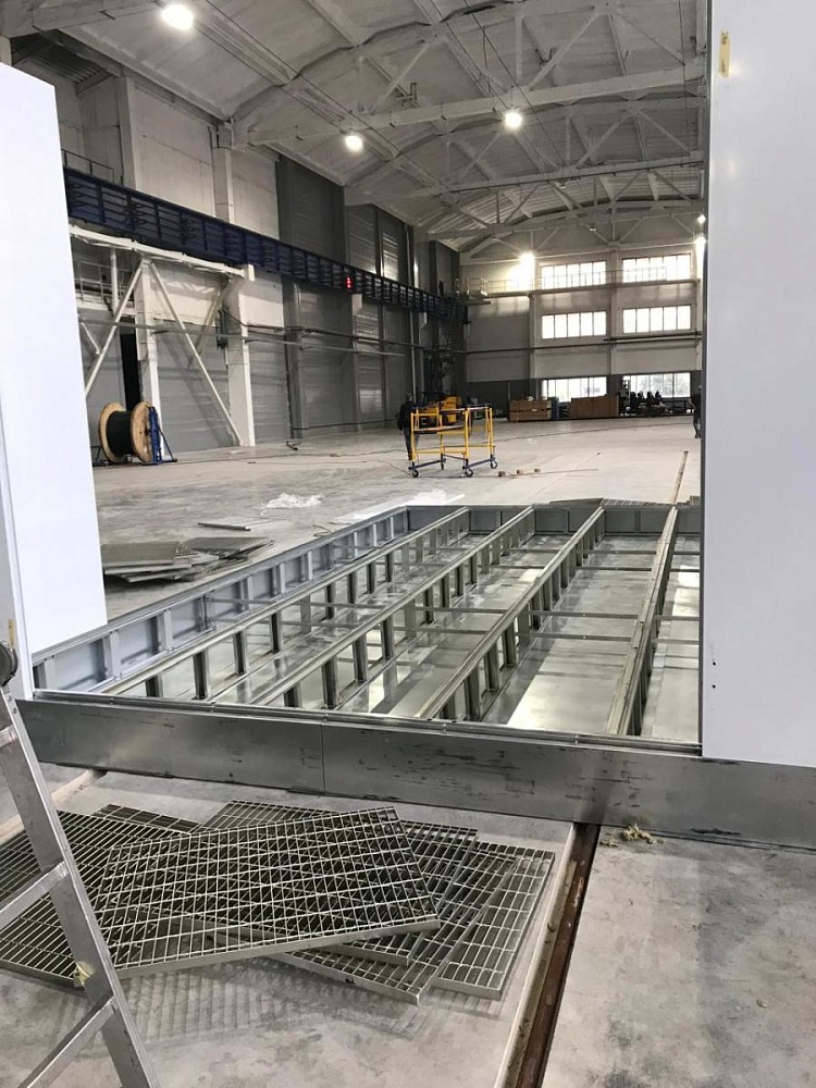 Наименование Характеристики Стены Сэндвич-панель, наполненная пенополистиролом Основание Металлическое основание камеры и группы притока высотой 25 см Наружные размеры Длина — 7 м, ширина — 5.3 м, высота — 3.5 м Внутренние размеры Длина — 6.9 м, ширина — 3.9 м, высота — 2.7 м Главная дверь Трехстворчатая, ширина — 3 м, высота — 2.7 м Аварийная дверь Ширина — 0.8 м, высота — 2 м, алюминиевый сэндвич Освещение Верхний уровень — 40 ламп по 36 ВтНижний уровень — 16 ламп по 18 Вт Воздухообмен 18000 м3/час