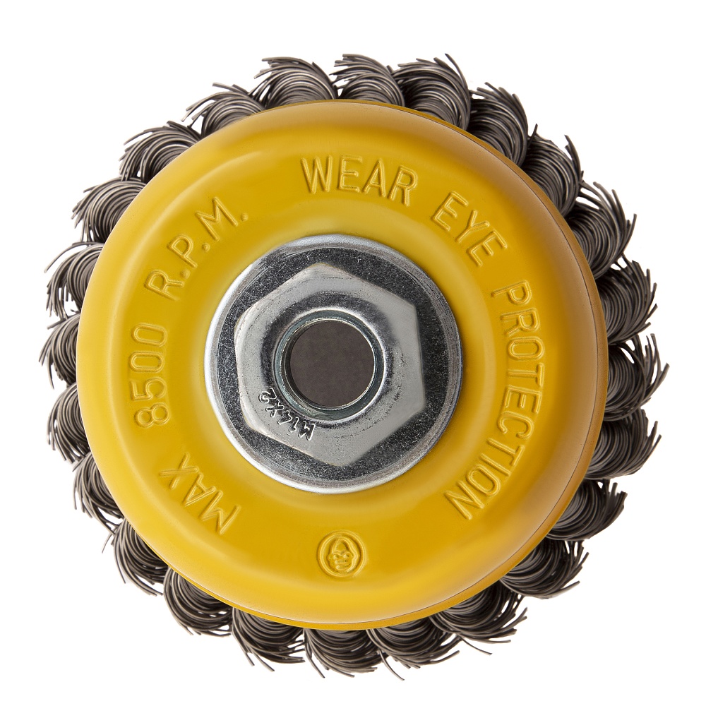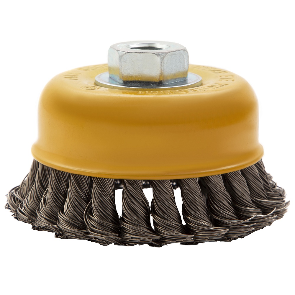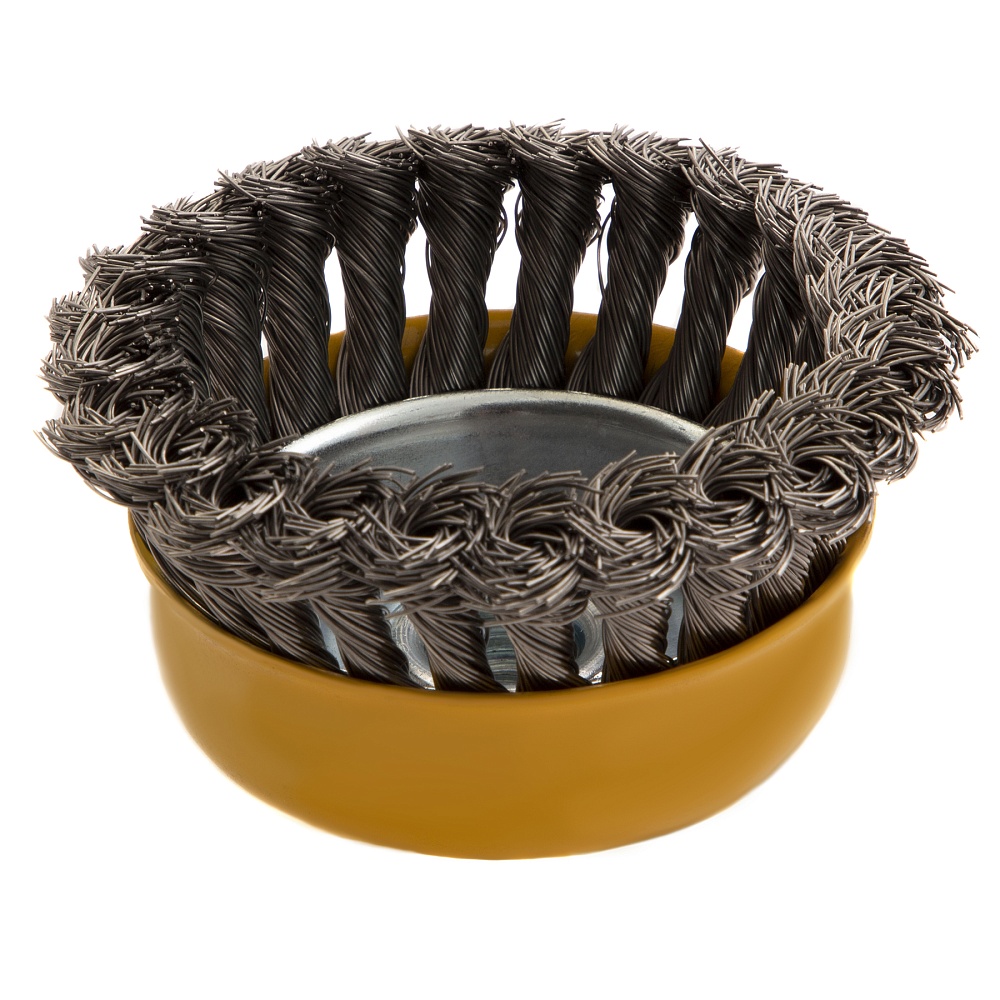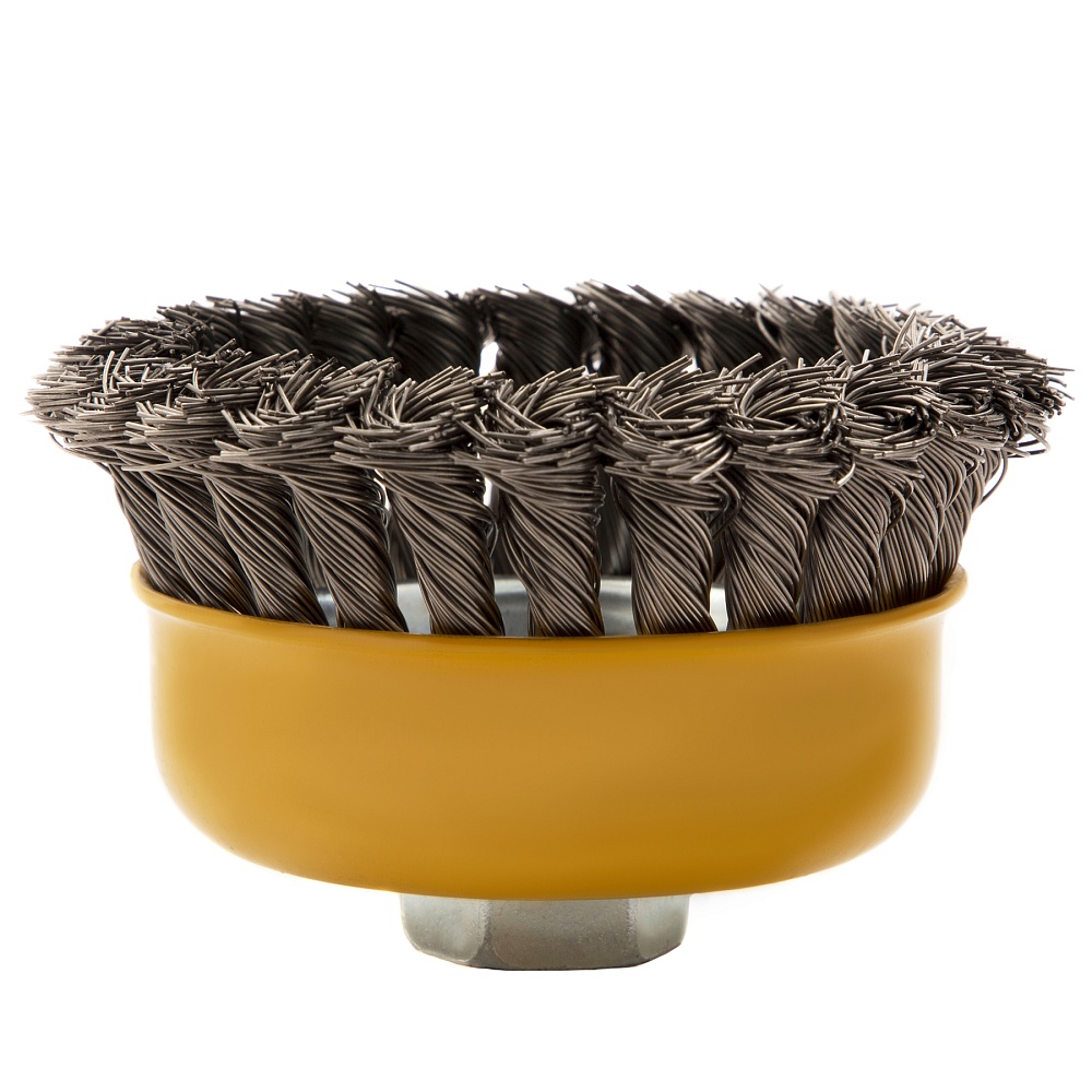 Щетка для УШМ, 100 мм, "Чашка", крученая нержавеющая проволока 0.5 мм, М14 Denzel купить в Красноярске цена ✅ - Все для СТО