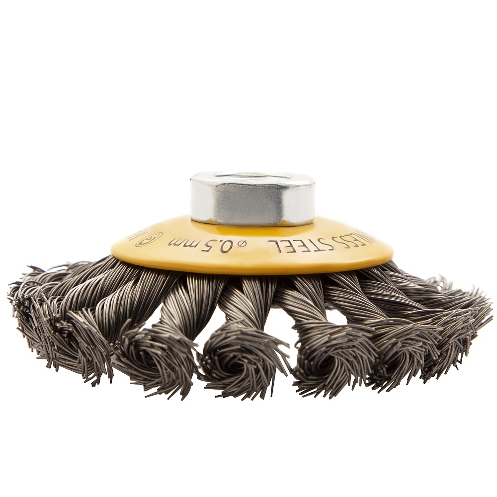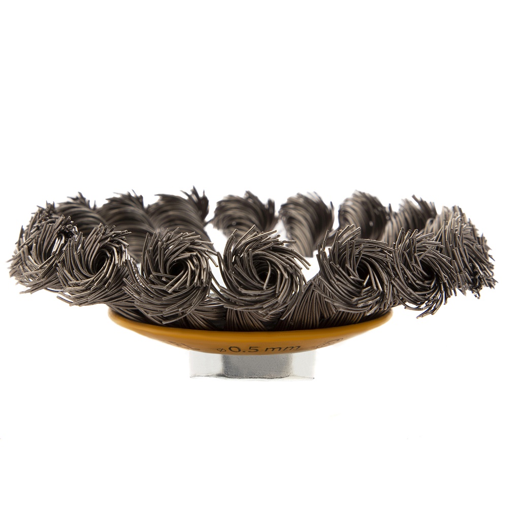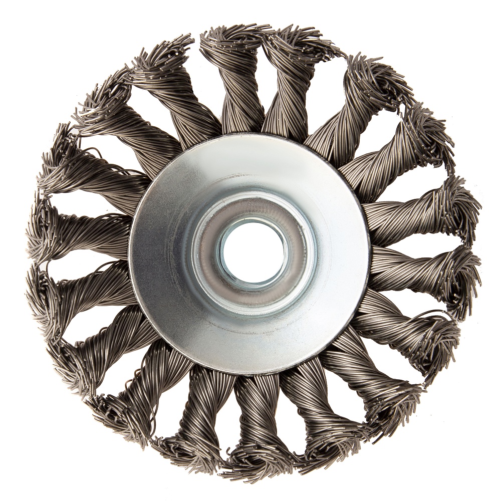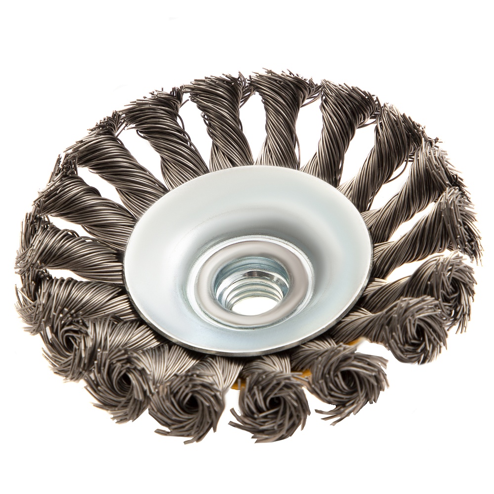 Щетка для УШМ, 100 мм, "Тарелка", крученая нержавеющая проволока 0.5 мм, М14 Denzel купить в Красноярске цена ✅ - Все для СТО