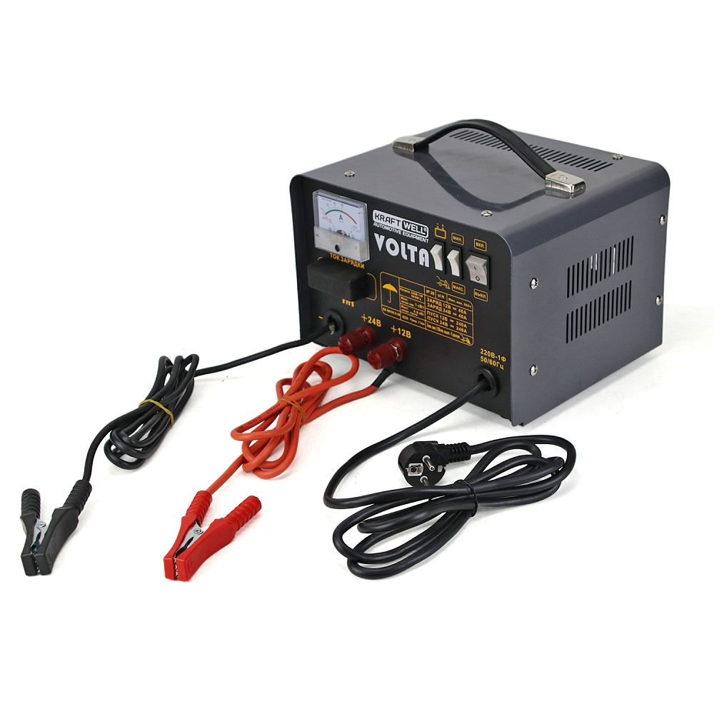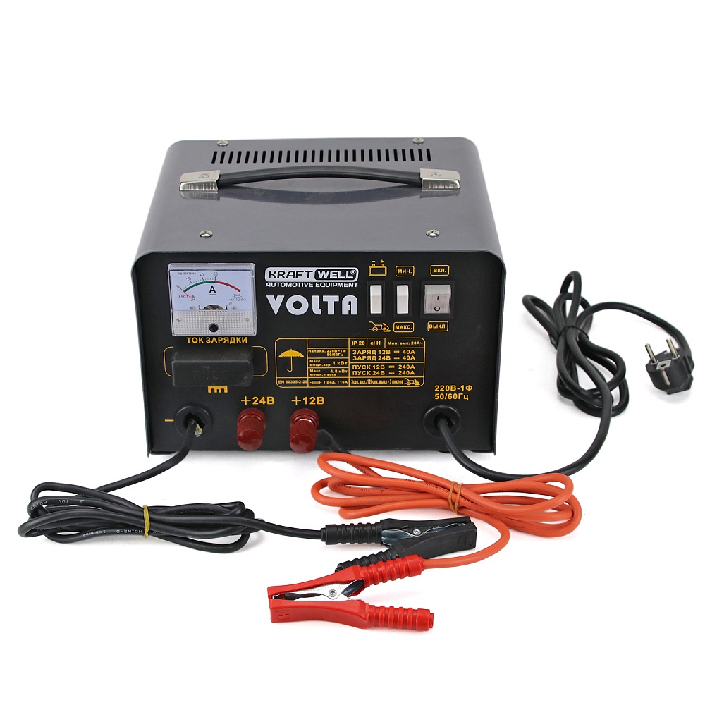 VOLTA KraftWell Пуско-зарядное устройство для автомобилей. Выходное напряжение 12/24В. Ток зарядки 40А. Пусковой ток 240А