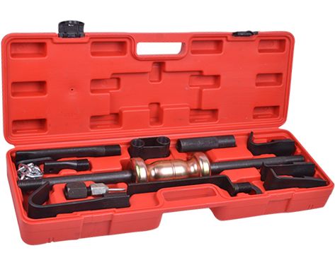 Обратный молоток TA-D1089 позволяет восстановить геометрию кузовных деталей автомобиля. С его помощью можно удалить вмятины, а также работать с деталями, расположенными в труднодоступных местах. Принцип работы заключается в том, чтобы прикрепить необходимый захват к деформированной детали и ударить в опорную шайбу обратным молотком. Для более удобного хранения набор поставляется в кейсе.