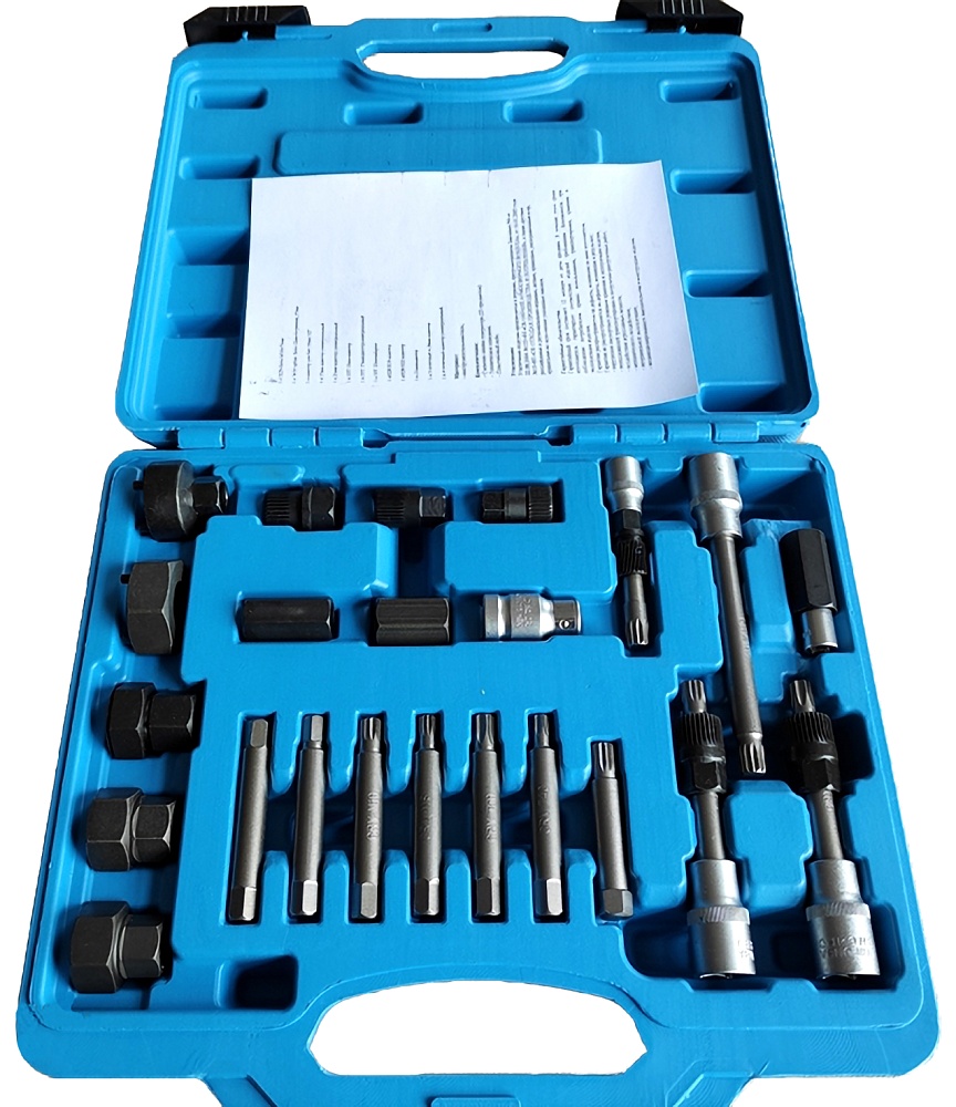 Набор съемников шкива генератора MHR08724 состоит из 24 предметов, среди которых имеются головки с битами как универсальные, так и предназначенные для конкретных марок автомобилей, адаптеры для большинства автомобилей зарубежного производства, адаптер для бит, адаптеры универсальные, шпильки, а также точечные адаптеры для некоторых марок автомобилей. Используя данный набор, можно провести ремонт и диагностику большинства марок автомобилей зарубежных производителей, не повредив других деталей. Все головки, биты, адаптеры, гайки и шпильки изготовлены из качественного материала, благодаря чему использовать набор можно часто, не боясь поломки комплектующих частей набора. Кроме того, все составляющие комплекта укомплектованы в удобном вместительном кейсе с замками, где каждый адаптер и головка, а также другие детали, зафиксированы, благодаря чему всегда находятся в порядке. Таким набором может пользоваться как профессионал, так и новичок, руководствуясь инструкцией, прилагаемой к нему.