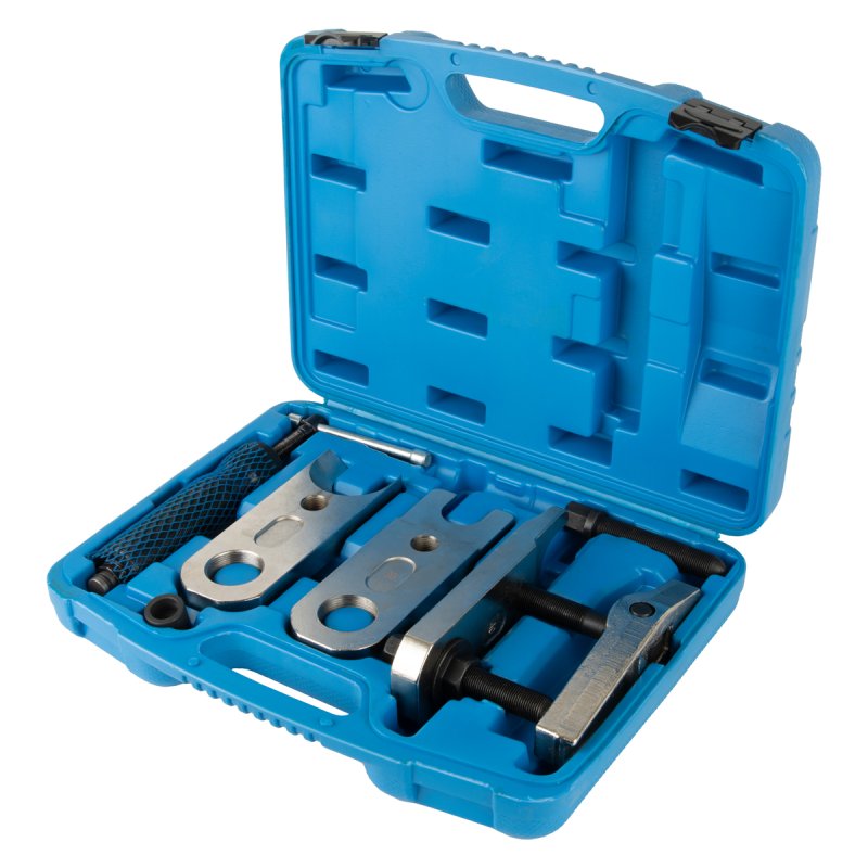 Универсальный гидравлический набор инструментов 12 т для снятия шаровых опор служит для демонтажа наконечников поперечной рулевой тяги, стабилизатора, поперечной устойчивости и шаровых опор. Может использоваться как вручную, так и при помощи гидравлического привода для грузовых автомобилей до 12 тонн - для этого в комплекте предусмотрен специализированный адаптер. Рабочий диапазон: 30, 34, 40 мм. Длина упорного винта: 100, 80 мм. Длина поворотного рычага: 125 мм.
