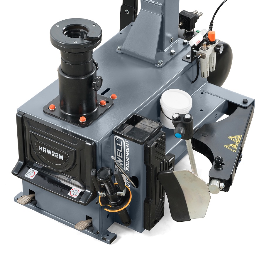 KRW28M KraftWell Станок шиномонтажный автоматический, поворотный стол c адаптером зажима через центральное отверстие диска, двухскоростной двигатель 380 В, 8-10 бар, диаметр дисков 14-28", диаметр колеса до 1140 мм (45"), ширина колеса до 355 мм (14"), отжимное усилие 2500 кг.