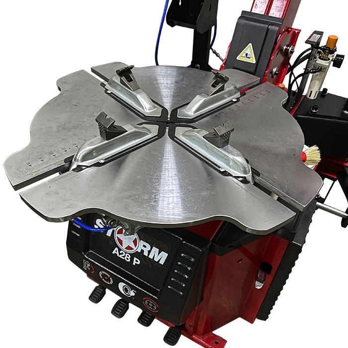 Storm А28 P - автоматический шиномонтажный станок с пневматической фиксацией и встроенной системой быстрой накачки шин. Предназначен для работы с дисками до 28”.Поставляется в комплекте с устройством правая рука STORM RH 2! Функциональные преимущества стенда а-28:- Комплект дооснащения, который включает в себя педаль, раздаточную коробку и манометр "Michelin" (пр-во Италия);- Две скорости вращения монтажного стола (в станках на 380В);- Увеличенная скорость работы отжимной лапы;- В комплекте - пластиковые вставки в монтажную лапу, накладка на отжимную лапу, насадки на зажимные кулачки;- Есть возможность поменять педали местами между собой (кроме управления вращением);- Увеличенная толщина металла корпуса станка - 3,5 мм!- Гарантия на станок 24 месяца.