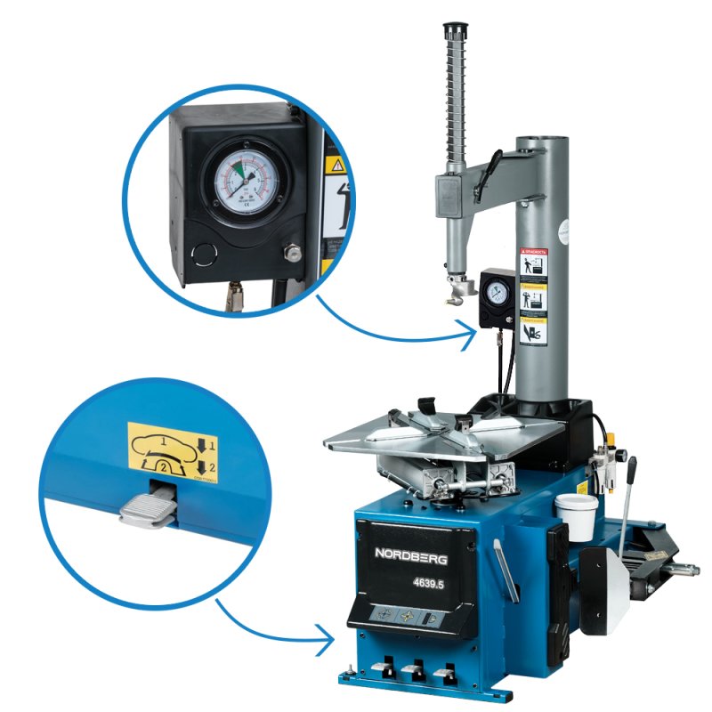 Станок шиномонтажный 220V п/автомат, односкоростн, подкачка педалью, зажимы 13-26", усил отжим NORDBERG 4639,5ID купить в Красноярске цена ✅ - Все для СТО
