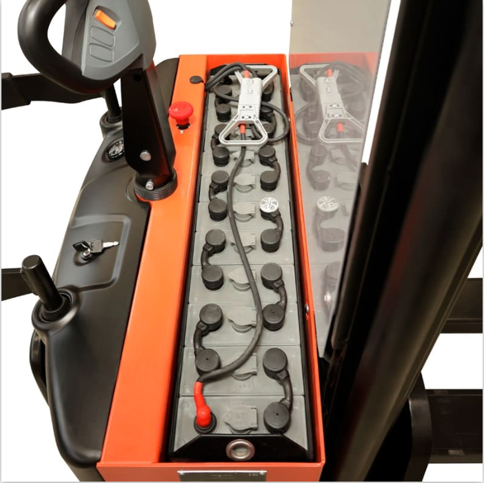 BPLW 1600 46 RAKUDA, Самоходный электрический штабелер, нагрузка 1600 кг., высота подъема 4500 мм, с платформой для оператора, АКБ 24в, зарядное устройство 24в/40а, контроллер Curtis