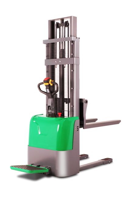 максимально облегчает работу оператора. Обладает простым и удобным управлением, высокой манёвренностью. Оснащён электромагнитным тормозом. Для обеспечения устойчивости штабелера при подъеме груза на большую высоту, он оснащена специальными дополнительными выдвижными упорами, которые можно легко убрать.