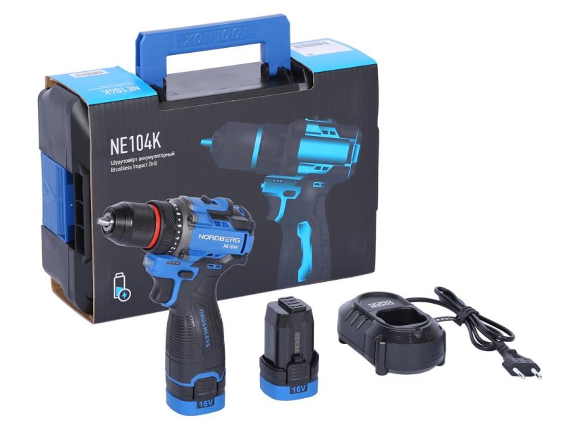 Шуруповерт аккумуляторный макс.диам. сверла 10 мм, 16 В, 60 Нм с 2 аккумуляторами и зарядным уст-вом NORDBERG NE104K купить в Красноярске цена ✅ - Все для СТО