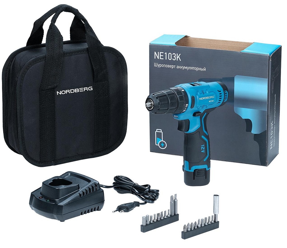 Шуруповерт аккумуляторный NORDBERG NE103K – универсальный инструмент для работы с крепежными элементами в автосервисах, производственных предприятиях, для профессиональных строительных работ, домашнего использования и пр.