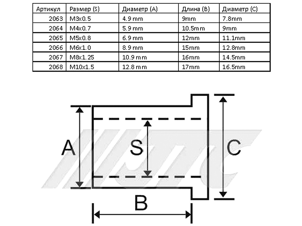 JTC-2065 Набор резьбовых алюминиевых заклепок M5X0,8 для заклепочника JTC-5821A, JTC-5218N (100шт) JTC /1 купить в Красноярске цена ✅ - Все для СТО